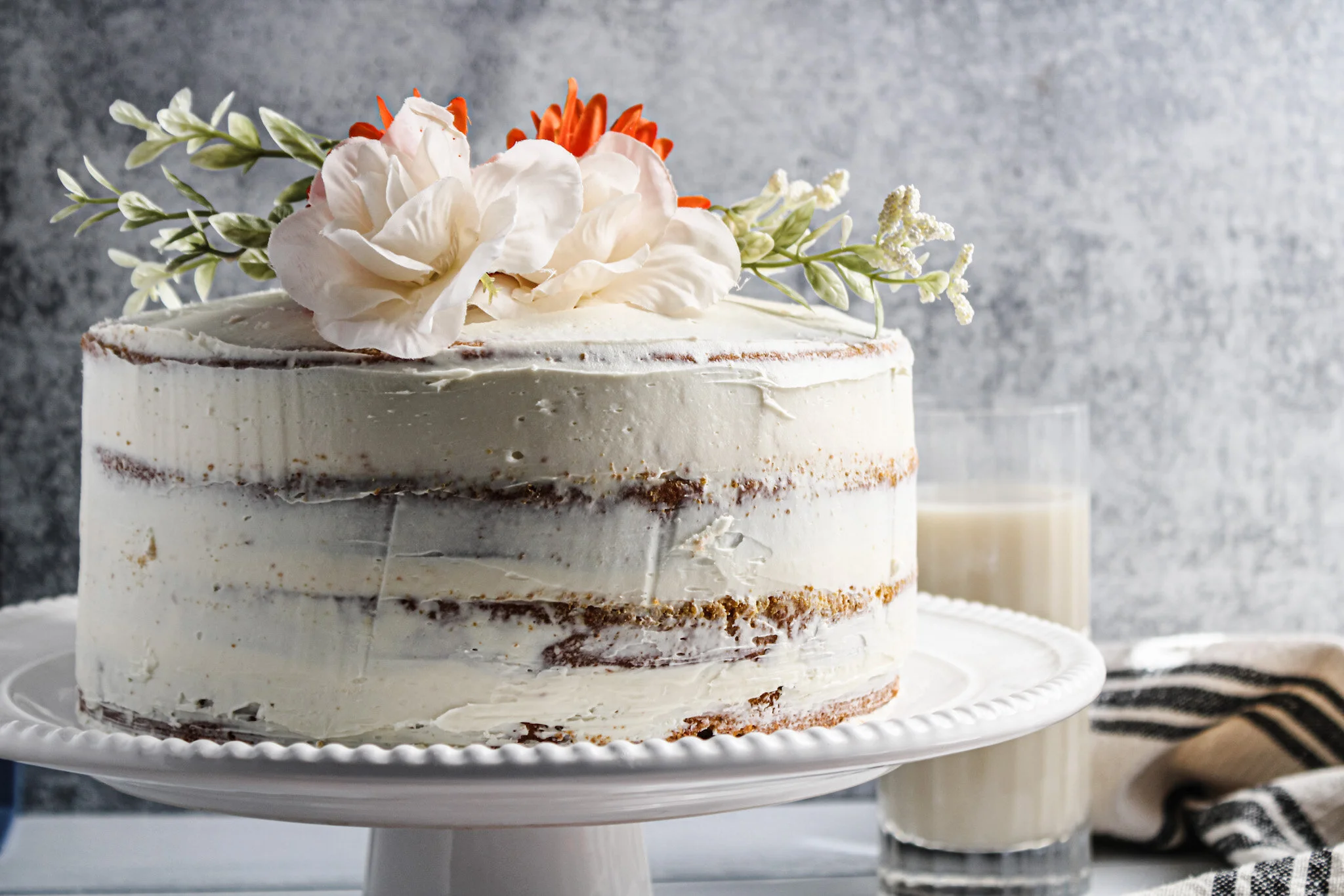 Assembly. Chill the cake for a few hours before assembling. I usually bake my cakes the day before and place them (tightly wrapped) in the fridge overnight. I’ve learned from experience that it’s so much easier to trim a cake that’s been chilled. After chilling, take a long knife with a serrated edge to trim the tops of each layer to make a flat surface. Place one cake layer on a cake stand or serving dish and, using an offset spatula, cover the top evenly with cream cheese frosting. Repeat with each subsequent layer, and then cover the sides of the assembled cake with frosting. Enjoy!